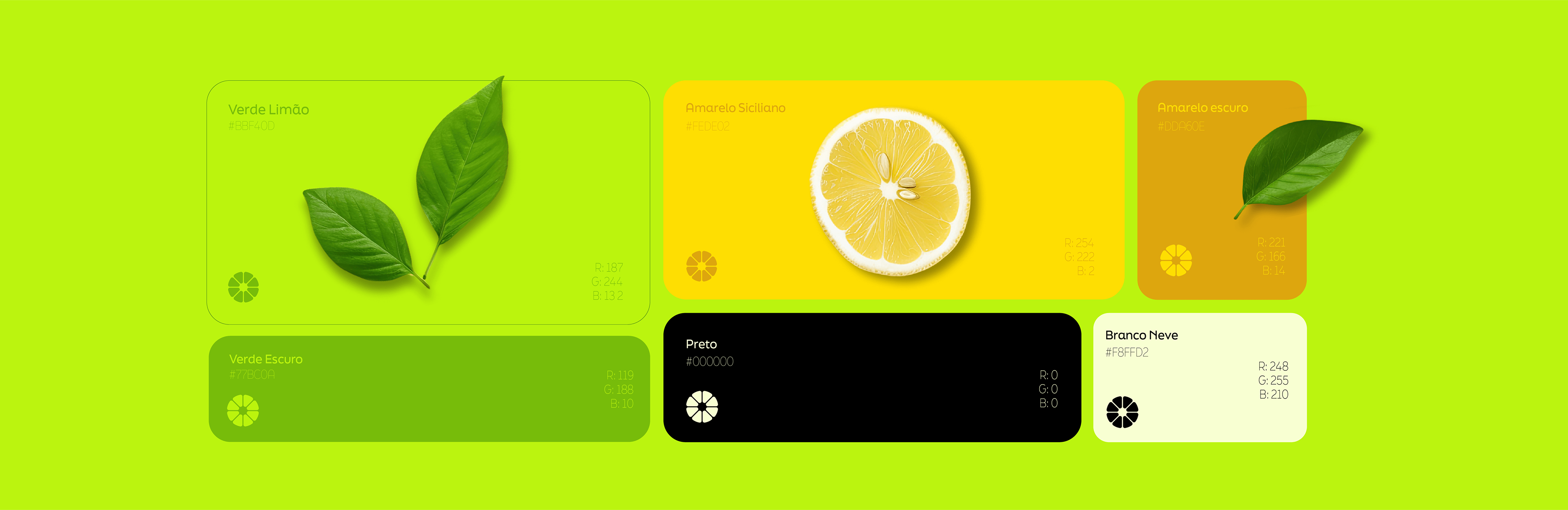 A concepção do projeto é inspirada no Design Divertido, incorporando uma vibe cítrica que evoca a refrescância da limonada, conforme sugerido pelo próprio nome. A identidade da marca é construída em torno da imagem da limonada, utilizando o limão como principal referência para criar um universo crítico e divertido por meio de formas, cores e texturas características da fruta. O projeto utiliza duas tipografias: Chuck para títulos destacados e Final Six para outros textos. A paleta de cores representa um universo vibrante com tons de verde e amarelo, simbolizando as diversas variedades de limões seguido por uma lettering que serve como logo.